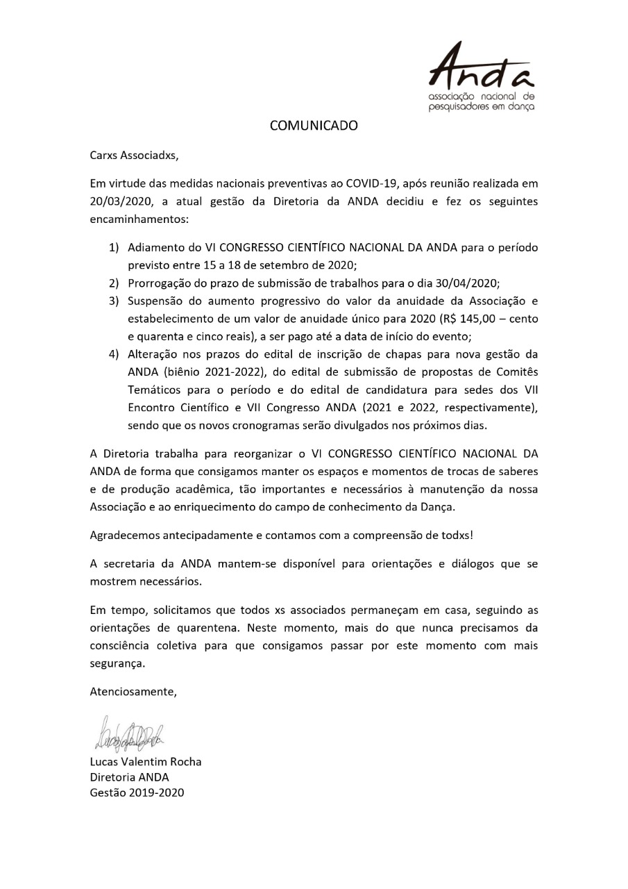 CARTA DE APOIO às manifestações de arte-educadores, pesquisadores e demais representações do campo das Artes CARTA DE APOIO às manifestações de arte-educadores, pesquisadores e demais representações do campo das Artes